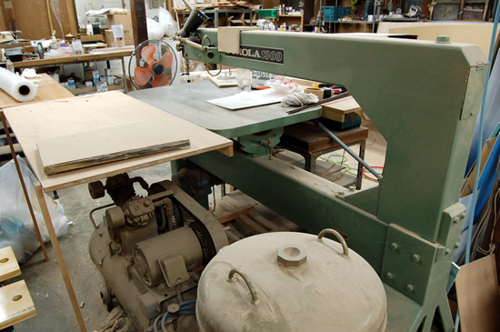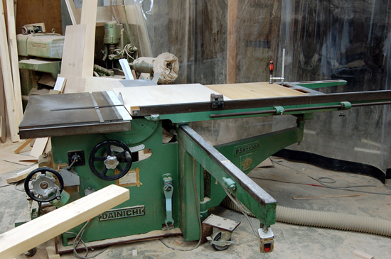 プレスして出来たパネルを必要寸法にカットする機械です。